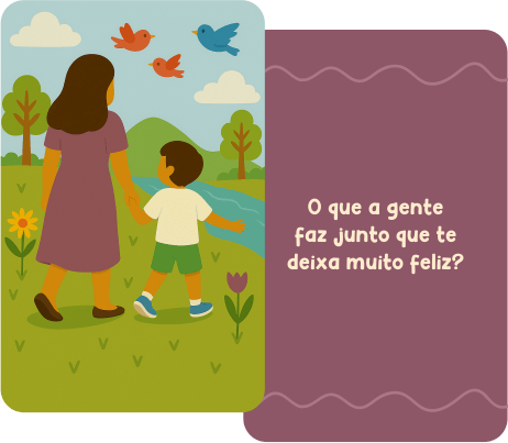 30 cartas com perguntas criativas e afetuosas que estimulam o diálogo, fortalecem o vínculo e criam lembranças afetivas entre vocês.